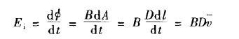 實(shí)際實(shí)驗(yàn)中,導(dǎo)體回路所包圍的面積的磁通量發(fā)生變化,通常有兩種表現(xiàn)形式:一是導(dǎo)體在磁場中作切割磁力線運(yùn)動;另一種是導(dǎo)體在磁場中并未作切割磁力線運(yùn)動,但是導(dǎo)體回路所包圍的磁通量是交變的。其中,如圖2一2所示,導(dǎo)體在磁場中作切割磁力線運(yùn)動,導(dǎo)體的兩端就會有感應(yīng)電動勢產(chǎn)生。這里,我們把單位面積的磁通量稱為磁感應(yīng)強(qiáng)度。從圖2一2可以看到.導(dǎo)體的長度與導(dǎo)體切割磁力線運(yùn)動的速度乘積形成了磁通量變化的面積。如果只考慮大小,就(略去(2-1)式前面的負(fù)號。于是