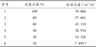 (1)把轉(zhuǎn)子流量計按玻璃管上的刻度示值做一遍檢定,得到如表1所示數(shù)據(jù),從中可以看出刻度示值為“100”和“80”時的引用誤差非常大,已經(jīng)無法正常使用(JJG257—2007《浮子流量計檢定規(guī)程》中規(guī)定引用誤差最大為5%)。